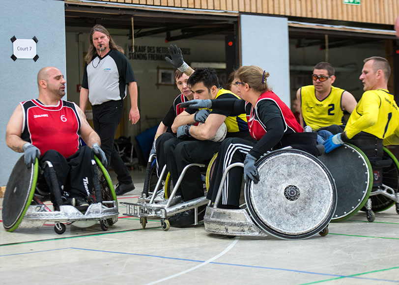 Rollstuhlrugby ist ein Hallensport, der von zwei Mannschaften mit je vier Spielern auf einem Spielfeld der Größe eines Basketballfeldes gespielt wird. Ziel ist es, Punkte zu machen, indem ein Spieler mit dem Ball (Volleyball) über die gegnerische Torlinie fährt. Die defensive Mannschaft versucht durch Blocken, Stoßen und Rammen mit dem Rollstuhl Tore zu verhindern und den Ball zu erobern. Körperkontakt wird mit Foul bestraft, Rollstuhlkontakt ist dagegen übliches und erwünschtes Mittel.